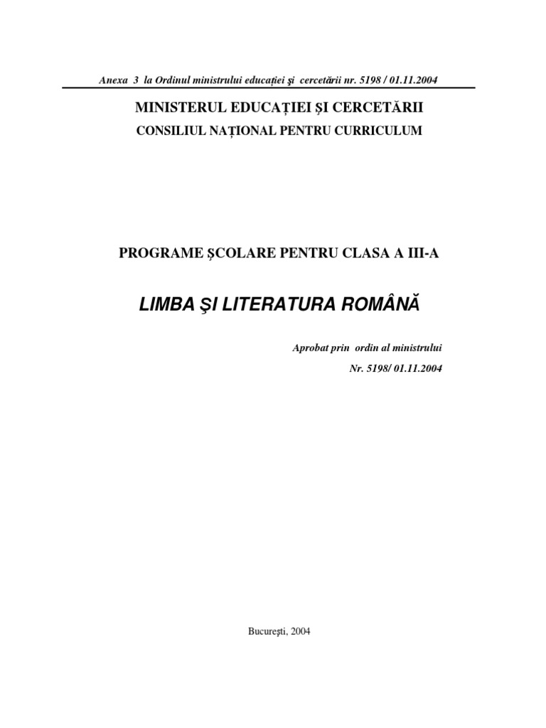 Programe Scolare Clasa A Iii-A. Proiectarea, confecţionarea şi evaluarea unor produse simple. Pent ru ş colile şi secţiile cu predare în limba. Elevii vor gasi unele dintre cele mai reprezentative opere din literatura romana si din cea universala, adecvate varstei lor si in conformitate cu programa scolara. Sa manifeste curiozitate pentru descoperirea unor aspecte legate de viata copiilor din marea britanie. Sa dezlegam tainele textelor literare.
