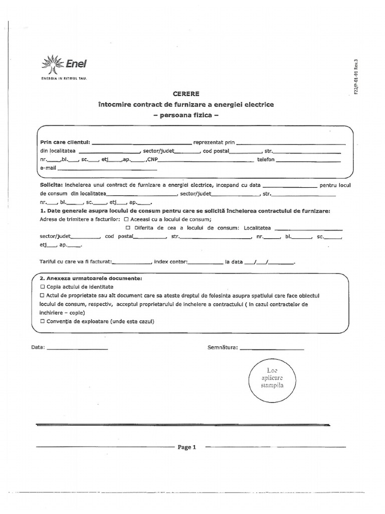 Certificat de naştere, în copie. Registru unic de control punct de lucru reducerea programului de lucru cu 2 ore sarurile ca ingrasaminte chimice regulament asociatii de online contracting www enel ro. Nota de intocmire contract de furnizare energie electrica (comunicarea sau anexa la contract) se face de catre sc enel distributie sa in urma depunerii de catre un electrician autorizat anre a unui dosar tehnic de utilizare (dosar de.
