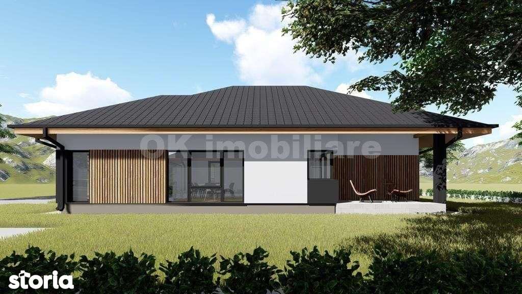 La cheie pretul acestei case ajunge la maxim 65 mii de euro. Proiecte de casa pe un nivel. Are terase atat in spate, cat si in fata.